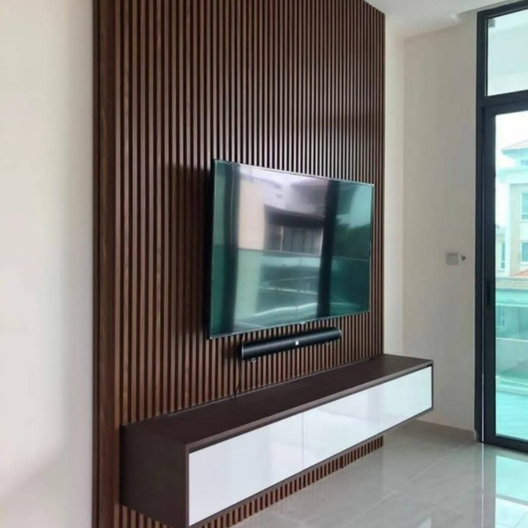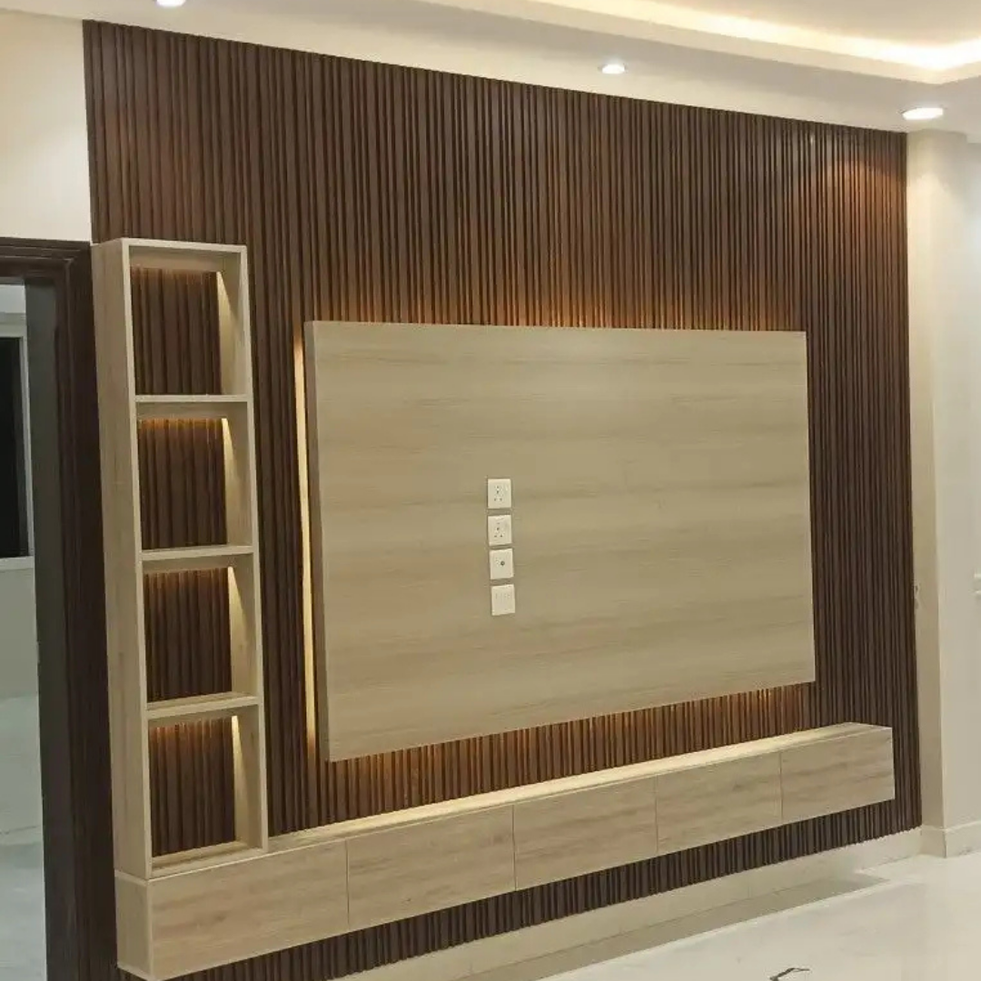 في بعض الأحيان، يمكن أن تكون تكلفة الأعمال الخشبية مرتفعة لبعض الفئات، لذا أصبح هناك بديل للخشب يقدم نفس المظهر. وهو يتكون من ألواح، سواء كانت طولية أو مضلعة، تُستخدم بشكل عام في جميع أشكال الديكور ومنها ديكورات الشاشات. تُستخدم هذه الألواح بكثرة في ديكورات الشاشات بسبب سهولة تركيبها وتنظيفها، مما يجعلها مناسبة لمساحة التلفزيون التي تُعتبر منطقة حساسة.